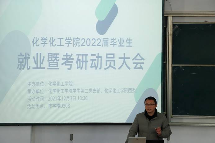 材料化学专业2018(2)班的陈哆英、化学专业2018(2)班的陈振国作为毕业生代表进行发言,分别分享了自己的考研备战经历和就业面试备考经验。